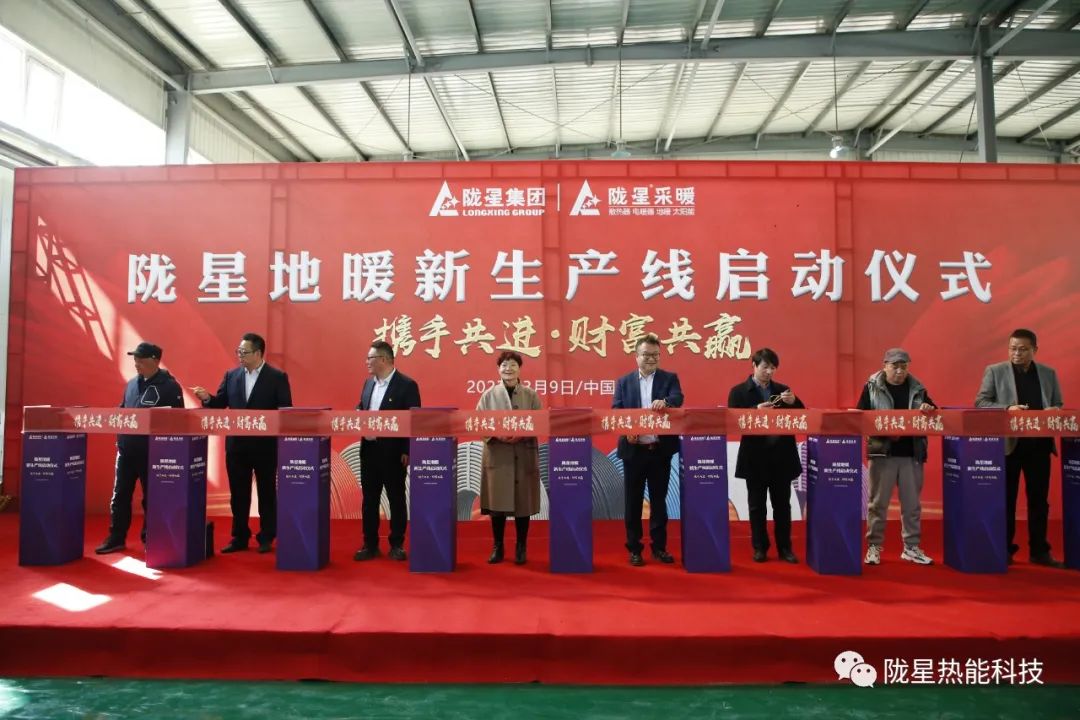 下午3:00,隴星工廠六車間開門大吉,喜迎八方來客。隴星地暖新生產線啟動儀式在六車間隆重舉行。