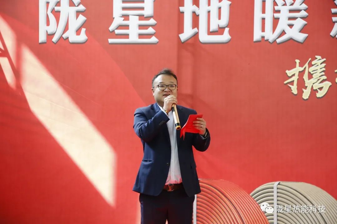 剪彩之后,隴星集團總經理、隴星熱能科技公司董事長吳茂原先生為啟動儀式致辭,吳總說:“工欲善其事,必先利其器。為助力隴星經銷商、工程商的銷售,構建發展利益共同體,隴星熱能科技公司年初投資建設了國內領先的年產3000萬米地暖管全自動化生產線,今天正式啟動并投產。”