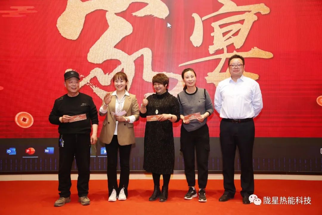 隴星集團董事長吳愛華女士、總經理吳茂原先生出席了此次盛會。出席會議的還有隴星集團副總、隴星熱能科技公司總經理趙明珠先生,集團副總黃巖先生,集團副總、隴星熱能科技公司工廠廠長李克林先生等集團領導及公司領導,會議現場200余人,共襄盛會。會議由公司副總經理、銷售公司總經理劉靜先生負責主持。