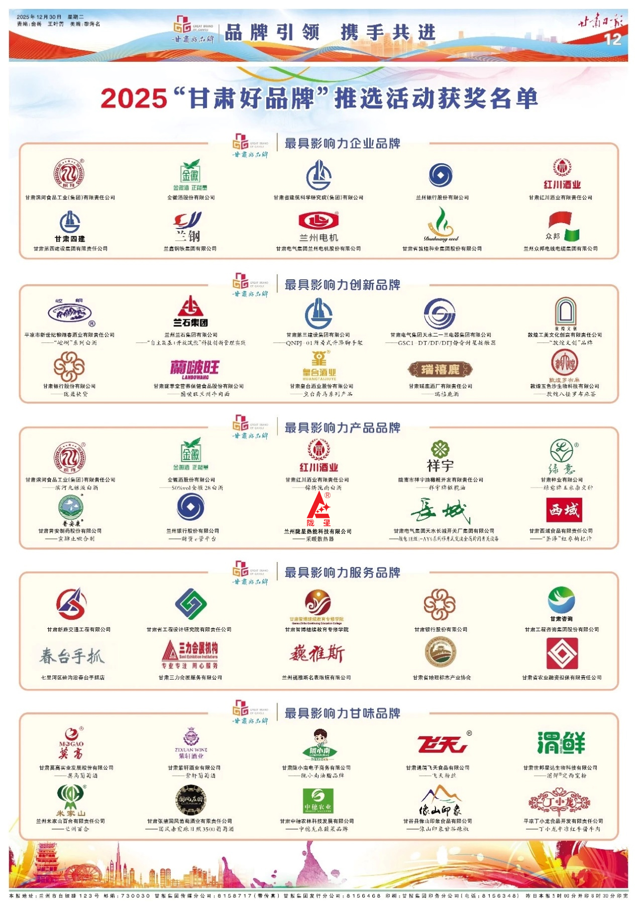 2025年12月30日,《甘肅日報》第11版、第12版以“品牌引領、攜手共進”為主題,刊發了2025“甘肅好品牌”推選活動獲獎名單。隴星品牌憑借其卓越的產品質量、深厚的品牌積淀與廣泛的市場影響力,榮獲 “最具影響力產品品牌” 稱號。